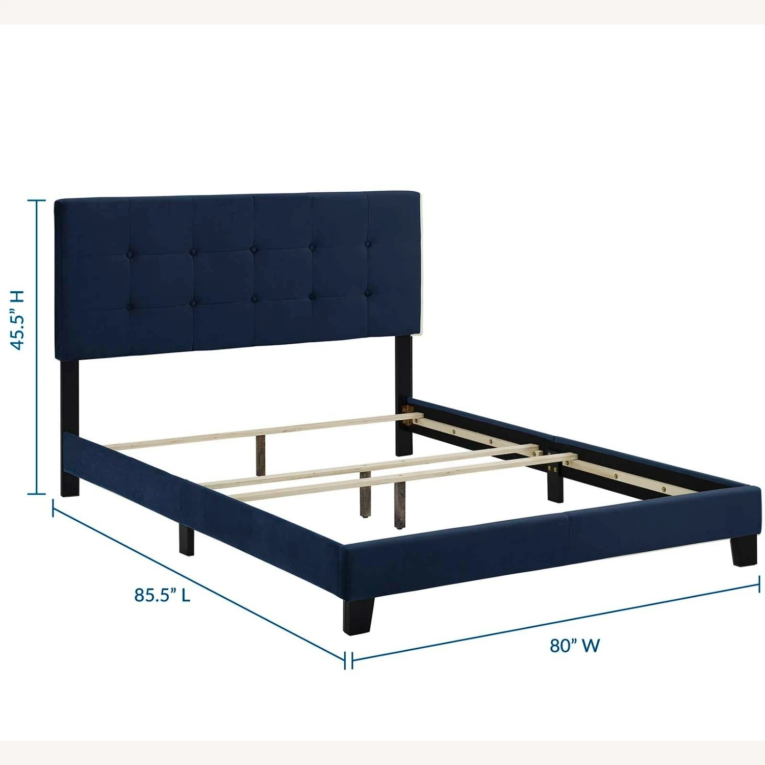 • Designed with chic elegance and contemporary style, this comes with a stain-resistant performance velvet fabric upholstered base, timeless button-tufted headboard, and wood bed frame and legs, with non-marking foot caps.