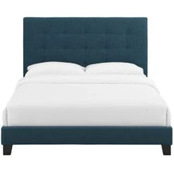• Designed with chic elegance and contemporary style, this bed’s base and headboard come upholstered in soft polyester fabric, while the sturdy wood frame and legs offer lasting durability.