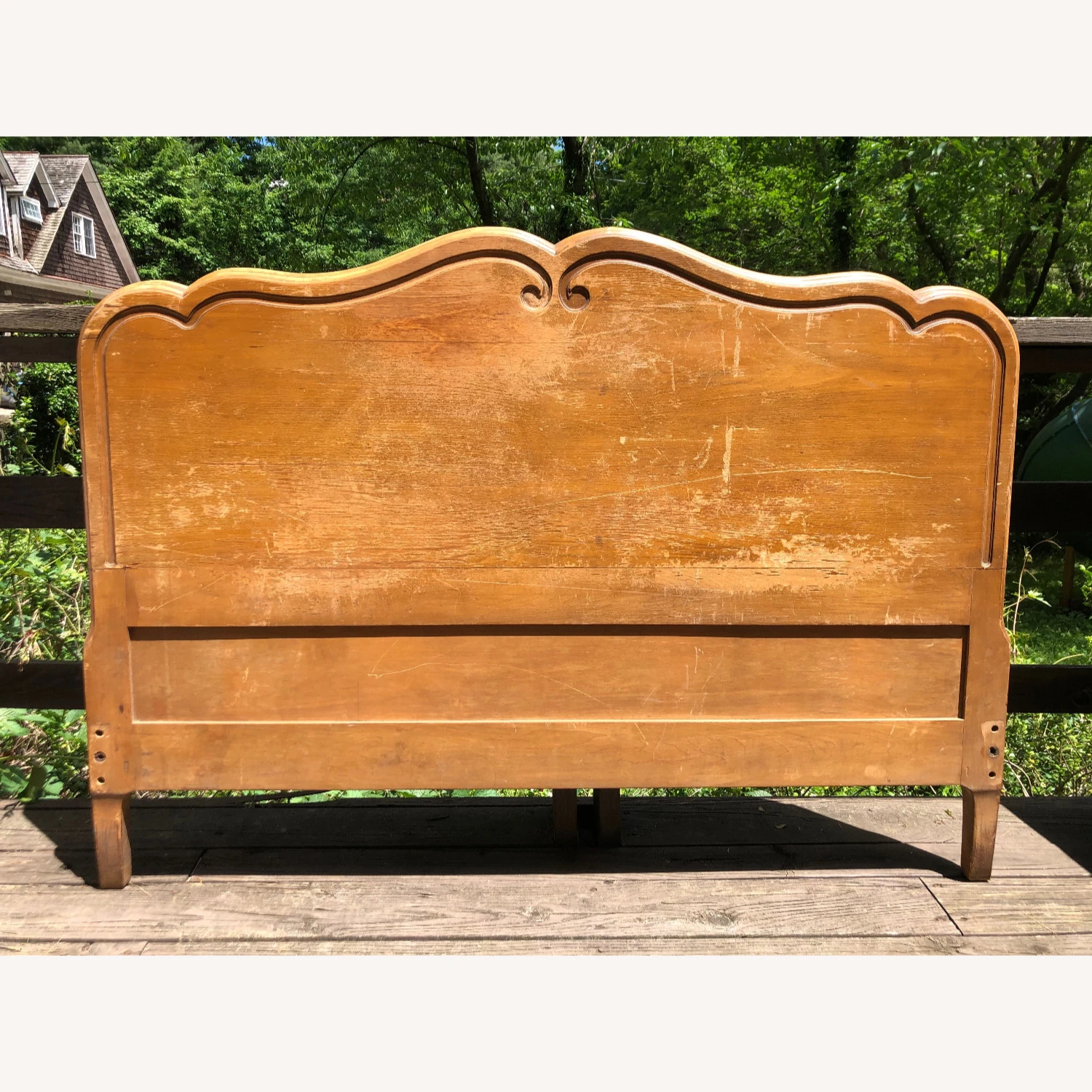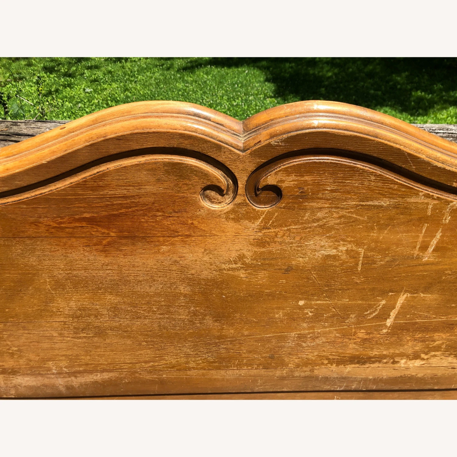 Seller’s Notes: antique carved headboard with curvilinear design flourish