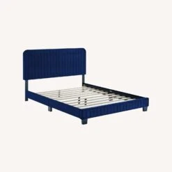 • Upholstered in stain-resistant performance velvet, this platform bed eliminates the need for a box spring with a wood slat support system to allow for ample air circulation and a reinforced center beam and support legs for added durability.