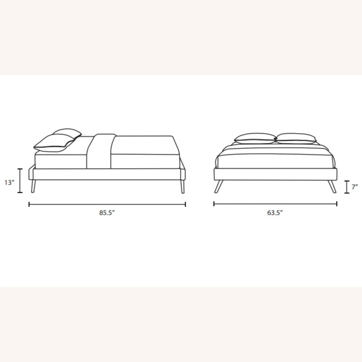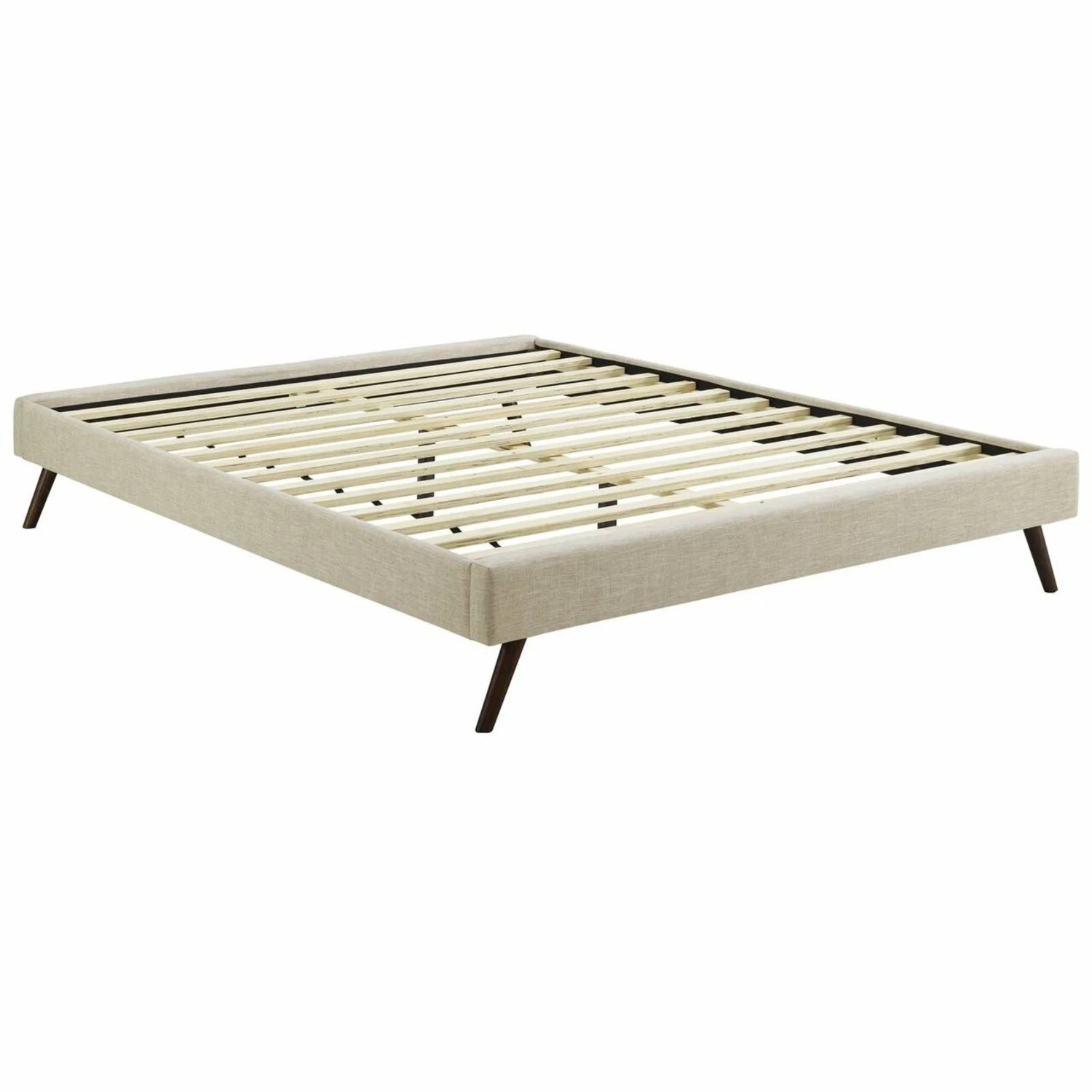 • Accelerate your bedroom decor with this Platform Bed. Made with a solid wood frame upholstered in polyester fabric, this bed features tapered wood legs, plastic foot glides, ten sturdy wood slats with a centered supporting bar and two support legs for enhanced stability.