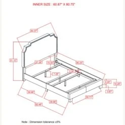 Queen Bed 64.25”w x 86.50”d x 51.00”h (4 slats)