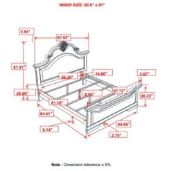 Queen Bed 68.00”w x 85.00”d x 67.50”h (4 slats)