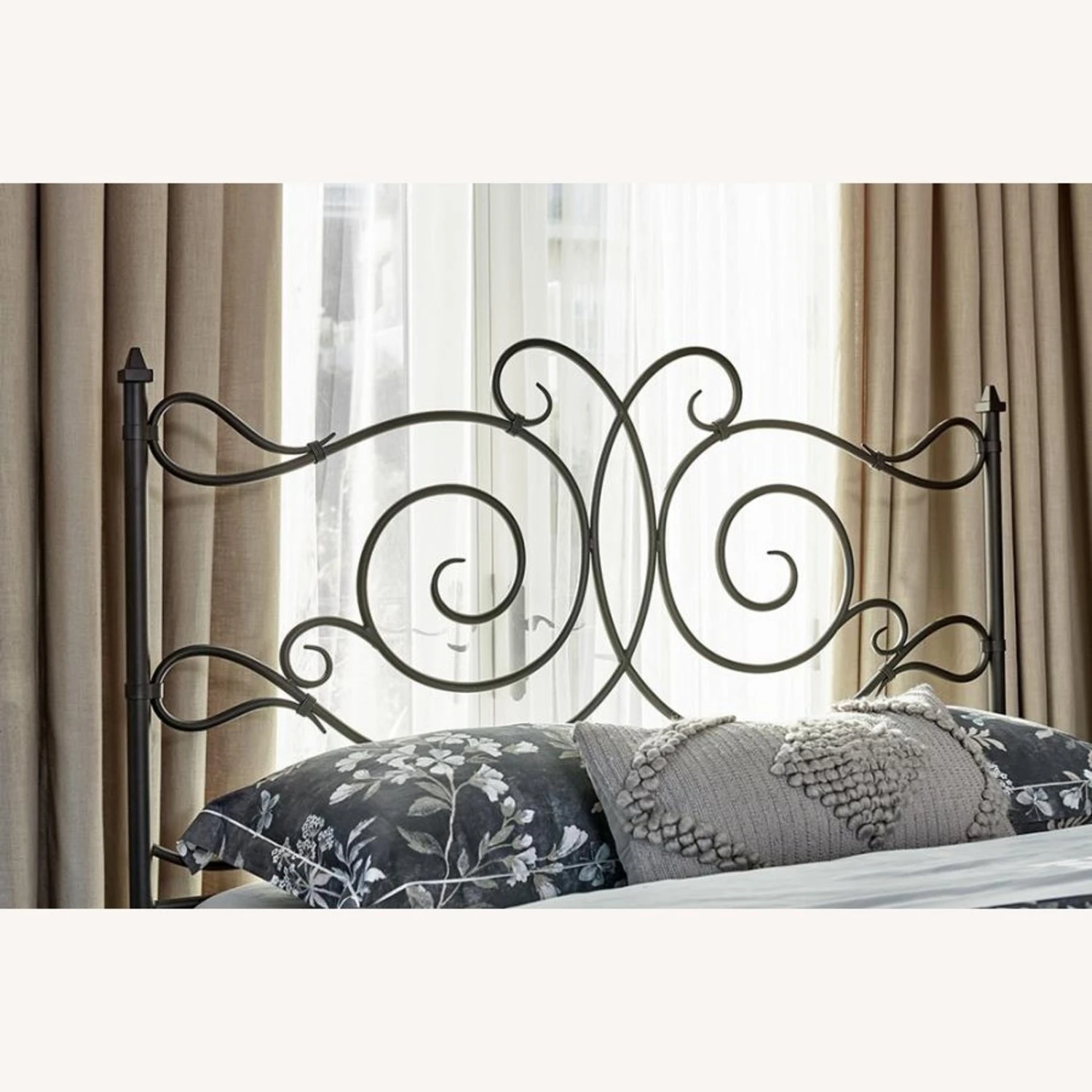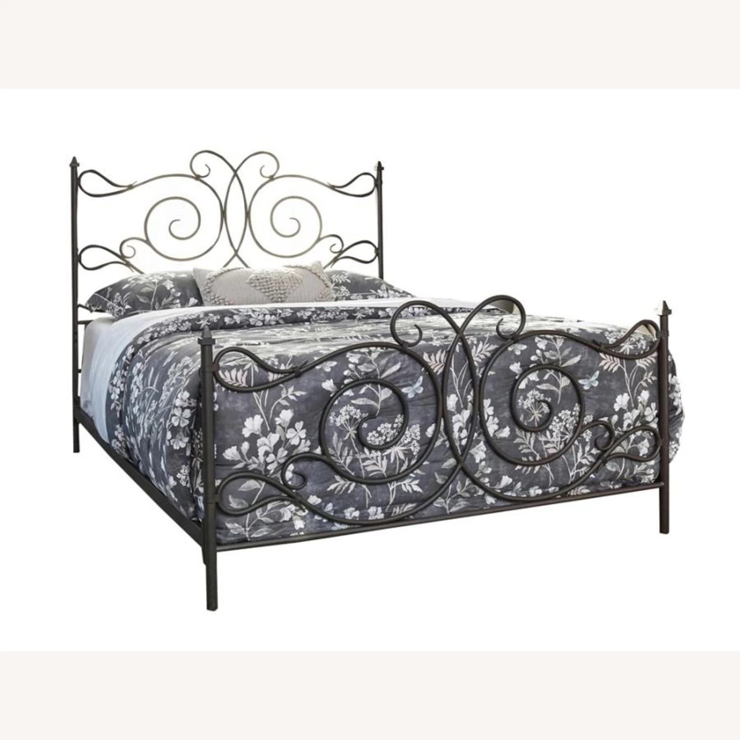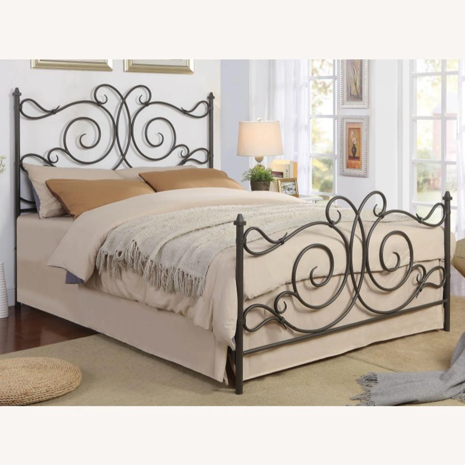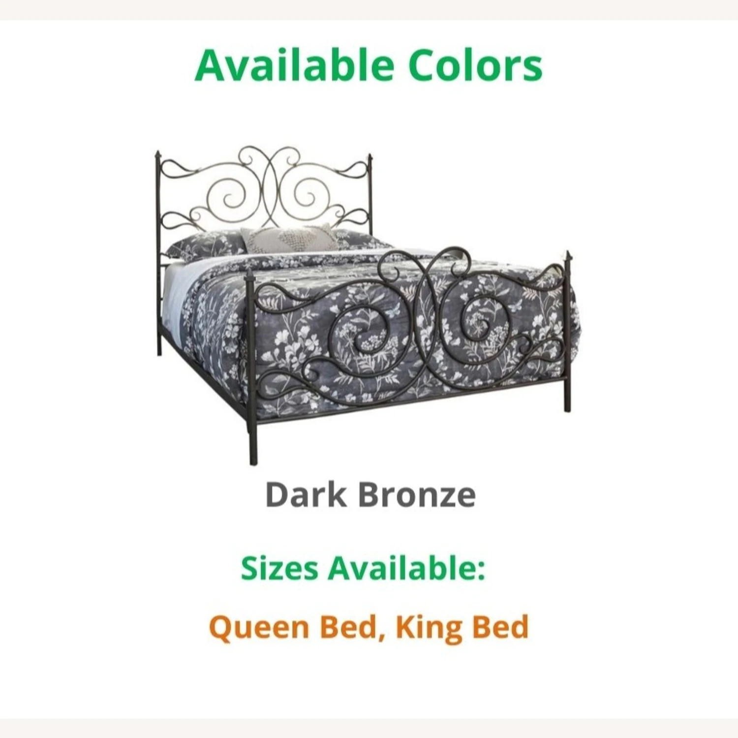 • Add a majestic touch to your bedroom ensemble with this elegant metal bed in a dark bronze powder coated finish