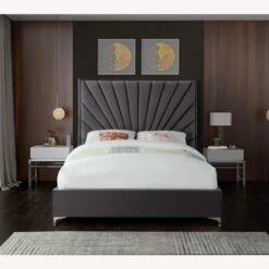 • Metal legs finish off this bed’s luxe look, giving it a modish slant.