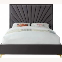 • A fan-like shell pattern on the headboard is achieved with channel tufting, which keeps the padded headboard plump and full, so it supports your back while you sit up in bed, binging on your favorite shows.