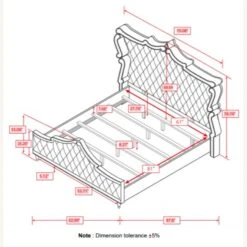 Queen Bed 70.00”w x 87.75”d x 78.75”h (5 slats)