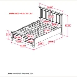Queen Storage Bed 65.00”w x 86.00”d x 57.25”h (12 slats)