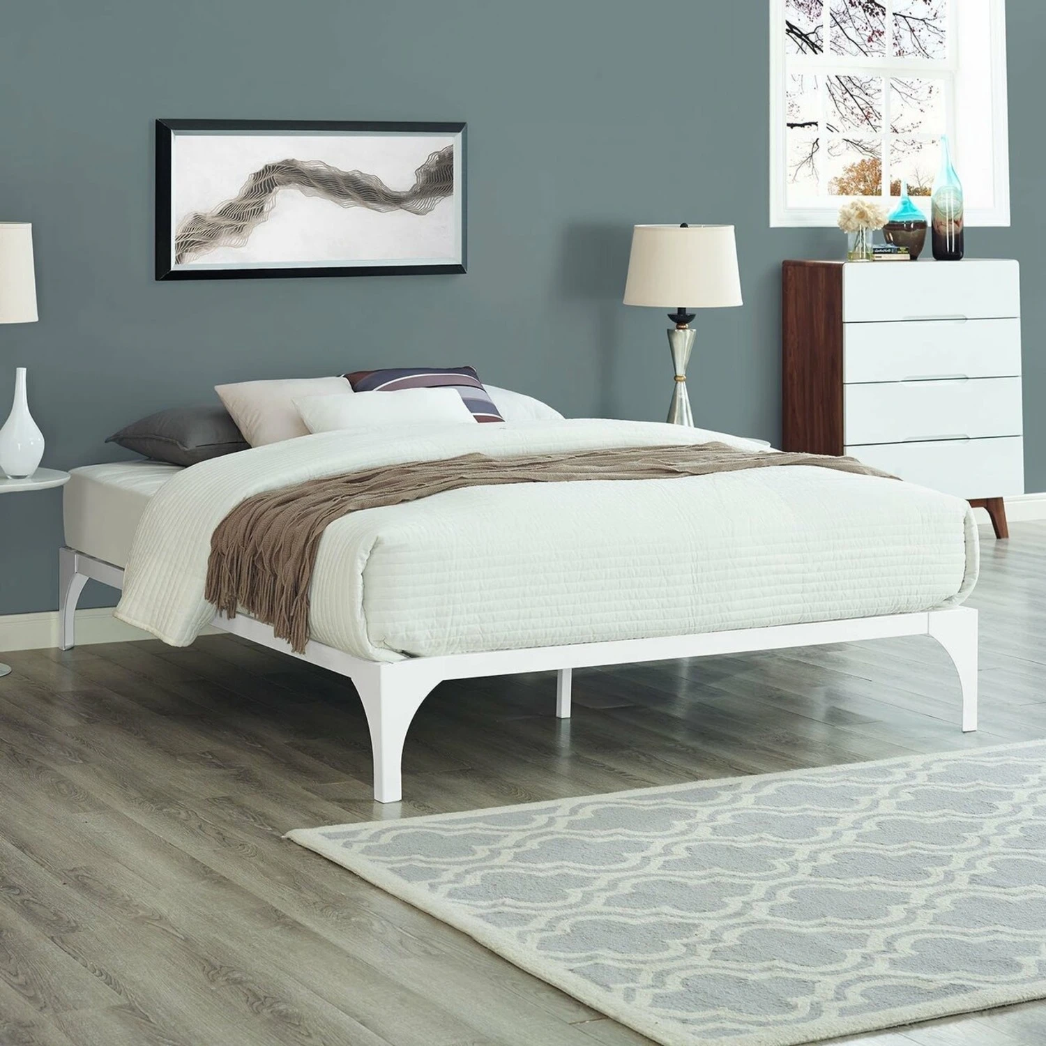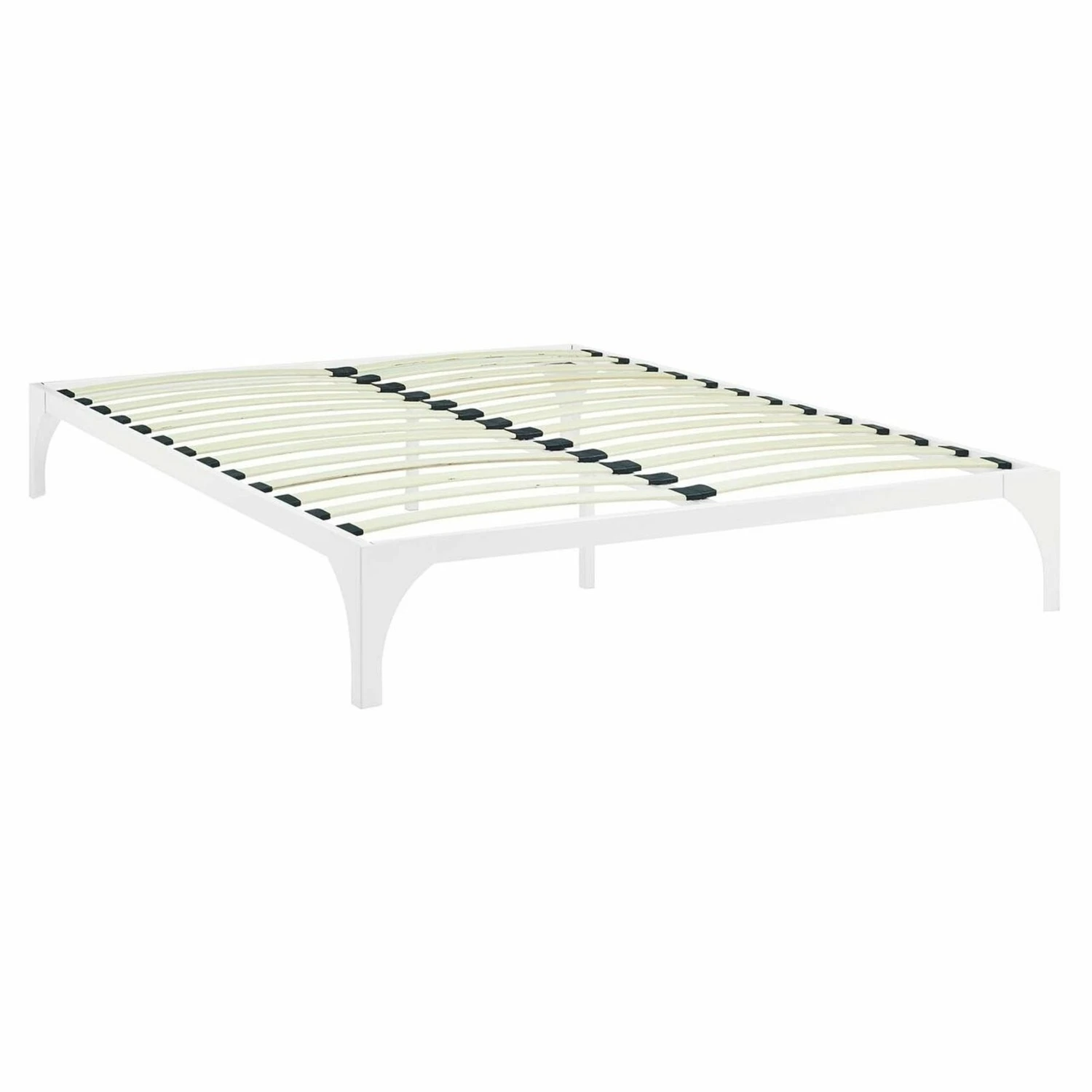 • Transform your bedroom décor with the Bed Frame. With a slatted wood support system and sturdy steel frame, this bed eliminates the need for a boxspring and firmly supports the various mattress types on the market such as memory foam, spring, latex, and hybrid.