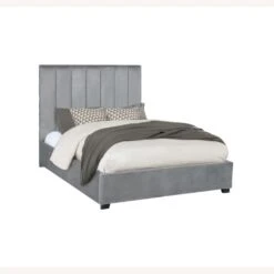 • Vertical channeled headboard and matching side panels create the perfect back drop