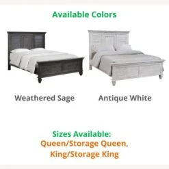 This model comes in these WEATHERED SAGE and ANTIQUE WHITE, and these sizes: QUEEN/STORAGE QUEEN and KING/STORAGE KING. If you are interested in a color/size other than that of this listing, and if the quantity you wish to purchase is greater than what is listed here, please message us for availability.