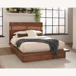 • Platform bed has wood panel platform – best to use with your all foam, latex or air mattresses