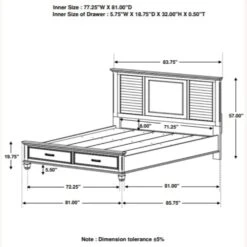 Eastern King Storage Bed 83.75”w x 85.75”d x 57.00”h