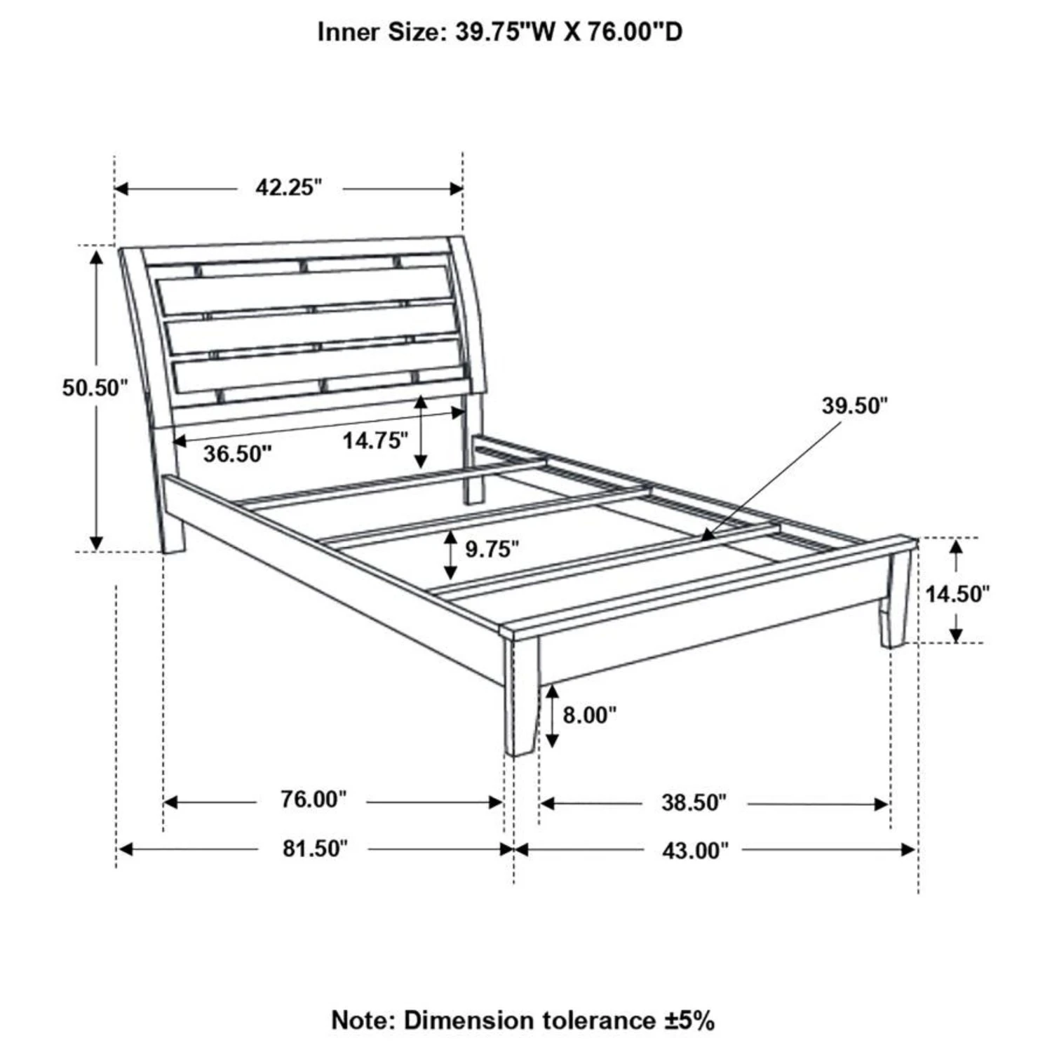 Twin Bed 43.00”w x 81.50”d x 50.50”h (4 slats)