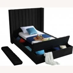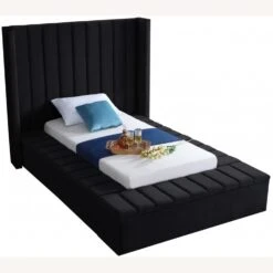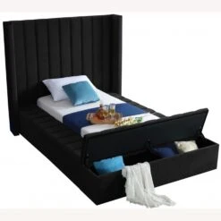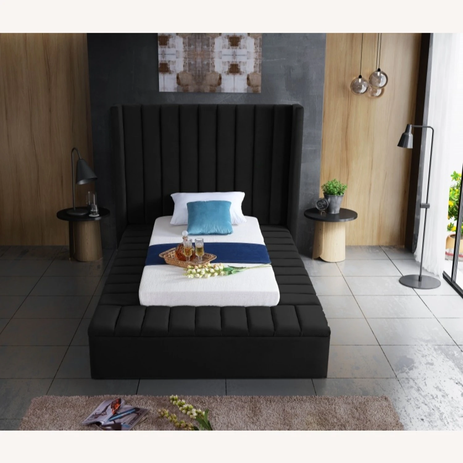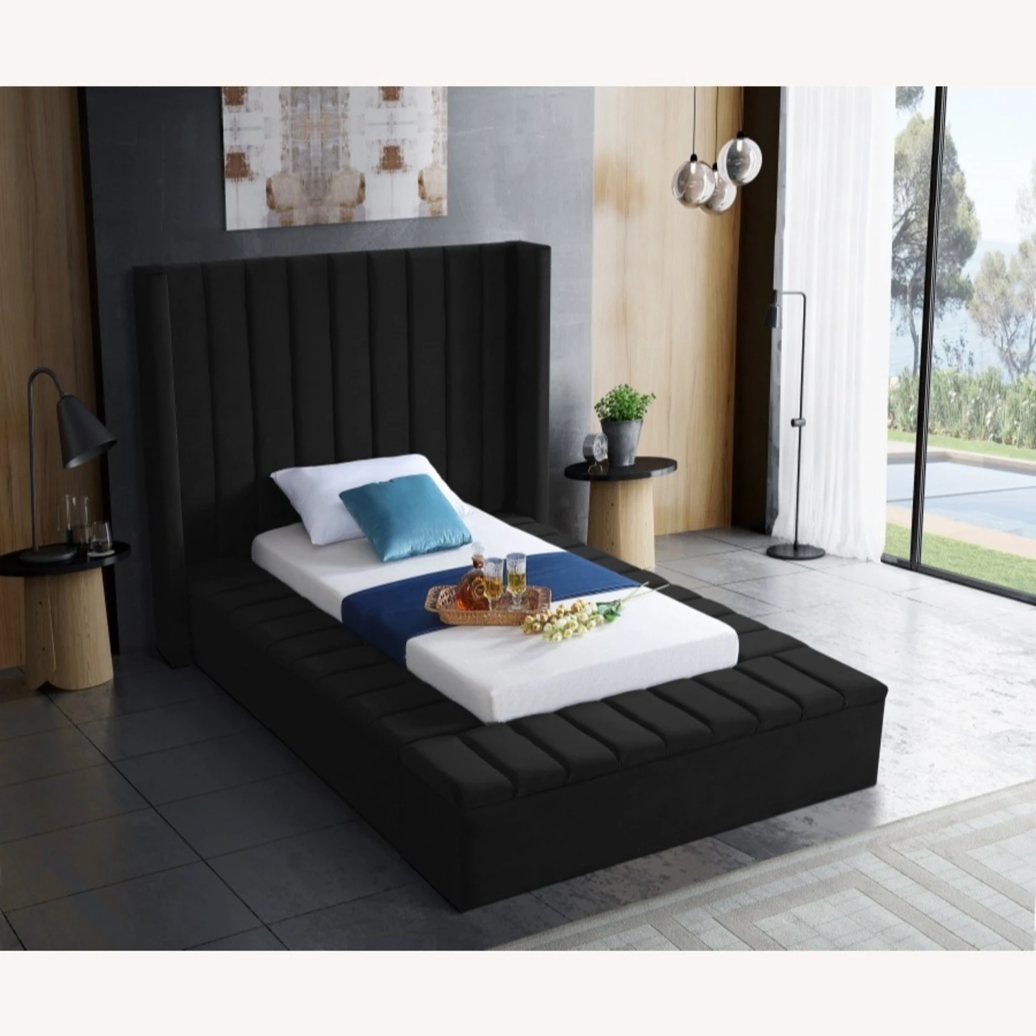 • Make a bold statement in your bedroom with this stunning black velvet twin bed.