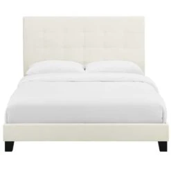 • Clean lines, a straightforward profile, and classic button tufting define this twin platform bed.