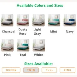 This model comes in these colors: CHARCOAL, DUSTY ROSE, LIGHT GRAY, MINT, NAVY, PINK, TEAL, & WHITE, and these sizes: QUEEN, TWIN, FULL, & KING. If you are interested in a color/size other than that of this listing, and if the quantity you wish to purchase is greater than what is listed here, please message us for availability.