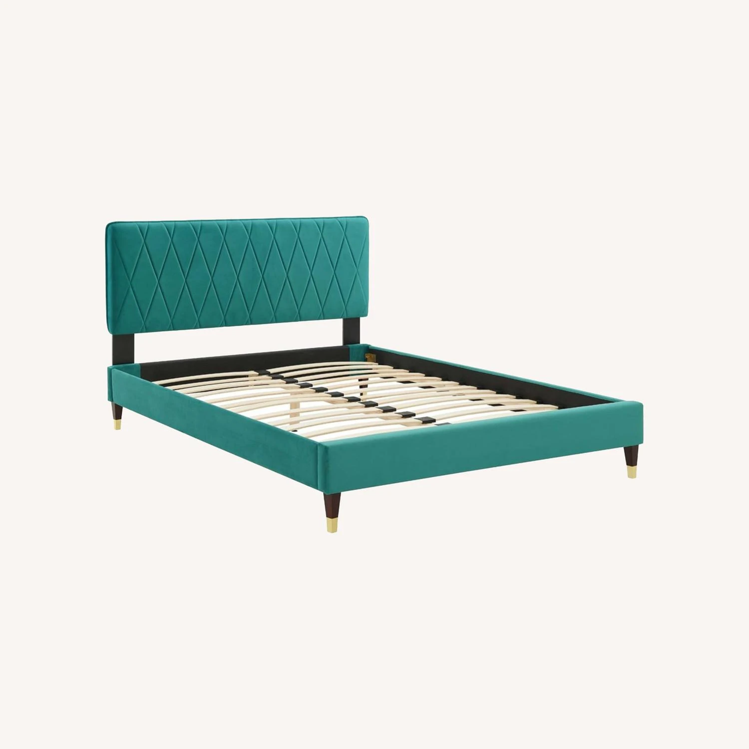 • Rich in glam deco style and vintage modern elegance, this upholstered bed is covered in stain-resistant performance velvet and is a sturdy mattress foundation for memory foam, innerspring, latex, and hybrid mattresses.