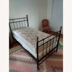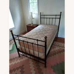 Seller’s Notes: Selling a new condition black metal frame bed set. Head and foot boards have antiqued brass accents.