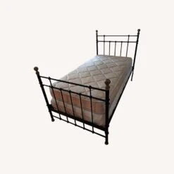 Seller’s Notes: Selling a new condition black metal frame bed set. Head and foot boards have antiqued brass accents.