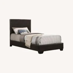 UPHOLSTERY: DARK BROWN LEATHERETTE
