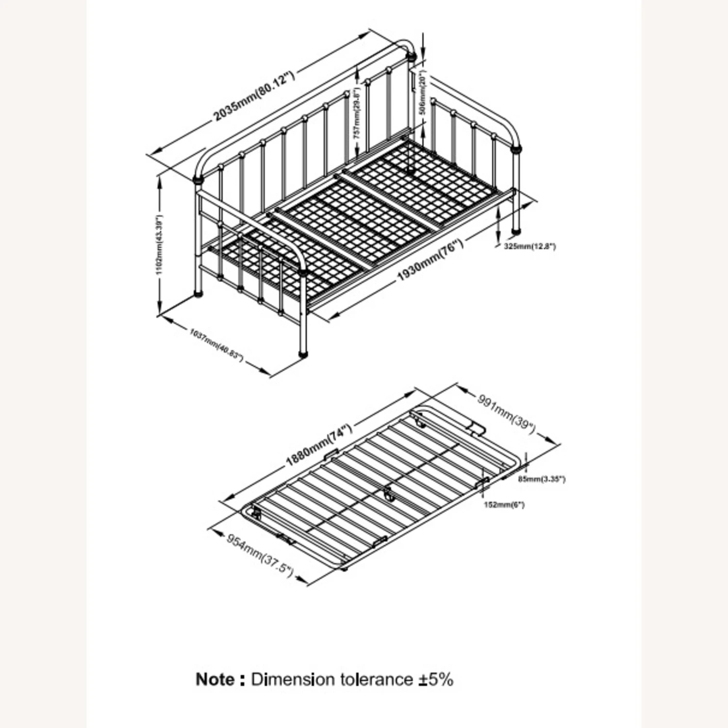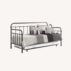 • • Twin metal daybed with trundle in dark bronze finish