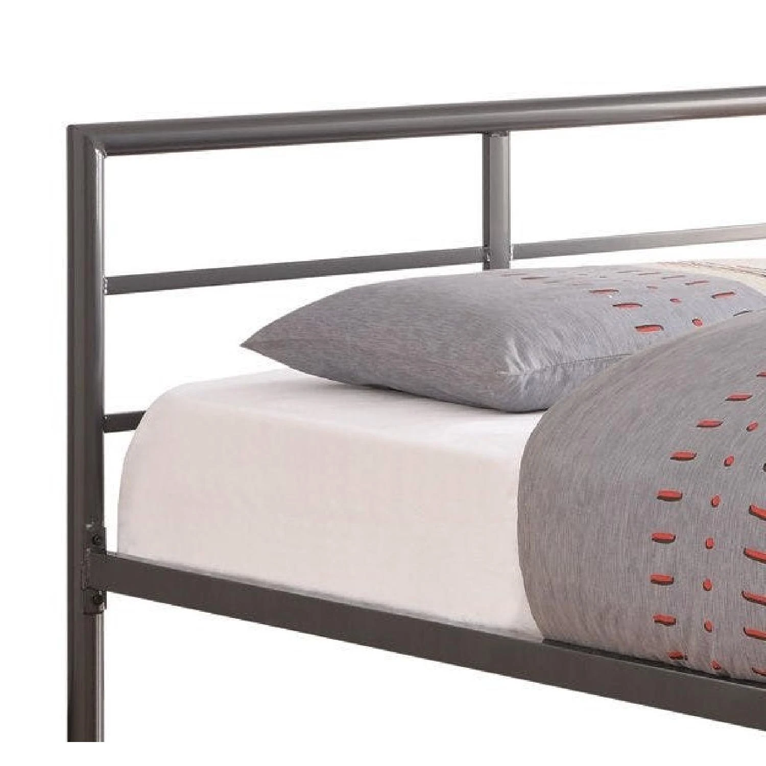 Constructed from durable metal and featuring a gunmetal finish, this full bed has an simple and attractive and casual style. Clean horizontal lines shape the headboard and footboard, while its casual appearance can complement a variety of room styles.