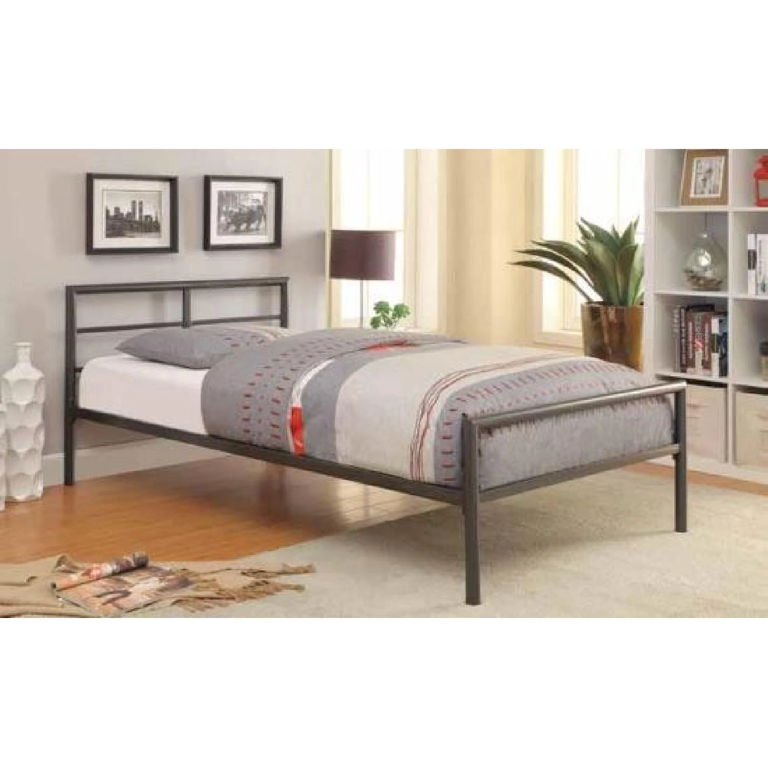 Twin Size Metal Platform Bed Frame in Gunmetal Finish