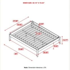 Overall Dimensions: Width: 57.75 inches, Height: 14.25 inches, Depth: 79.75 inches