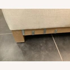 Corner-blocked engineered wood frame with mortise-and-tenon joinery provides exceptional structural integrity.