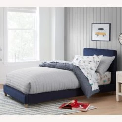 Seller’s Notes: The Payton Upholstered Bed adds modern flair to your little one’s space. It’s designed with an ultra-plush back that they’ll adore. Plus, it’s crafted from solid wood for lasting style and durability. Bed is upholstered in Twill Navy.