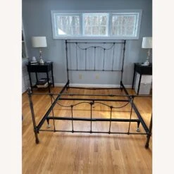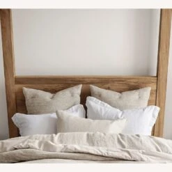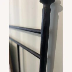 Finish is applied in multi-step process with white frame and natural spindles and legs.