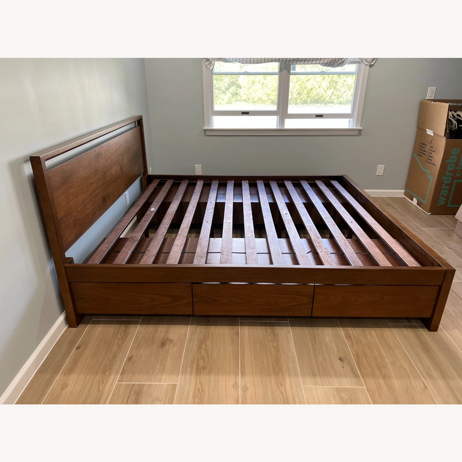 We recently moved into our home and purchased this brand new solid wood king bed thinking the fit and color would work with our bedroom but unfortunately, this beautiful bed does not work with our space. We have never used this bed, it is still sitting in our bedroom as you see in the photos. We paid a total of $2,000 for this bed and is asking for $1,500. We are negotiable and welcome offers. Please don’t hesitate to reach out if you have questions. We hope this beautiful piece goes to another beautiful home!