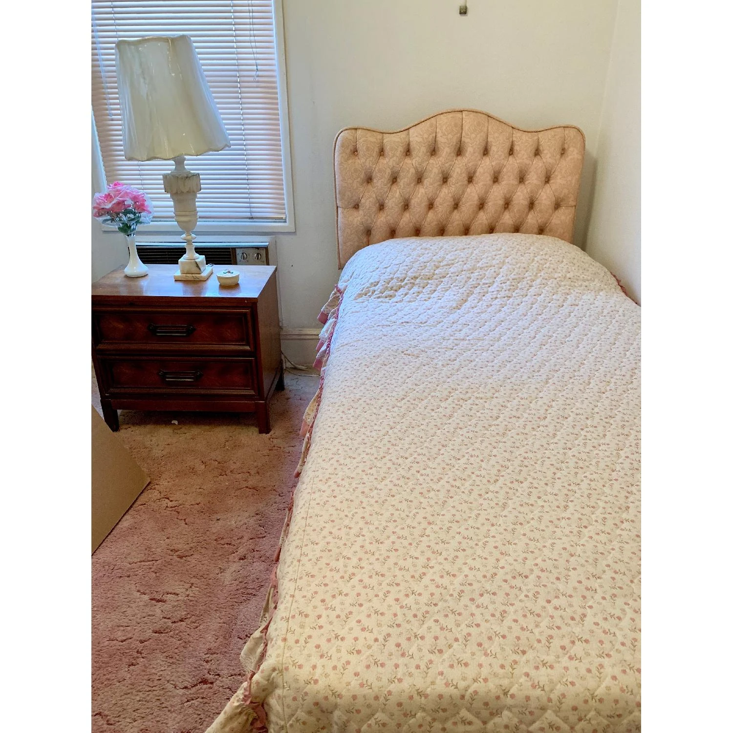 Seller’s Notes: This pair of twin vintage Hollywood Regency tufted headboards are in great condition, with minor wear and tear that is not noticeable. Their unique pink color make them a great retro addition. Complete with hardware.