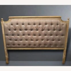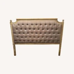 Seller’s Notes: Zentique Louis Button Tufted Limed Grey Fabric Wood Headboard Queen Bed No Frame.